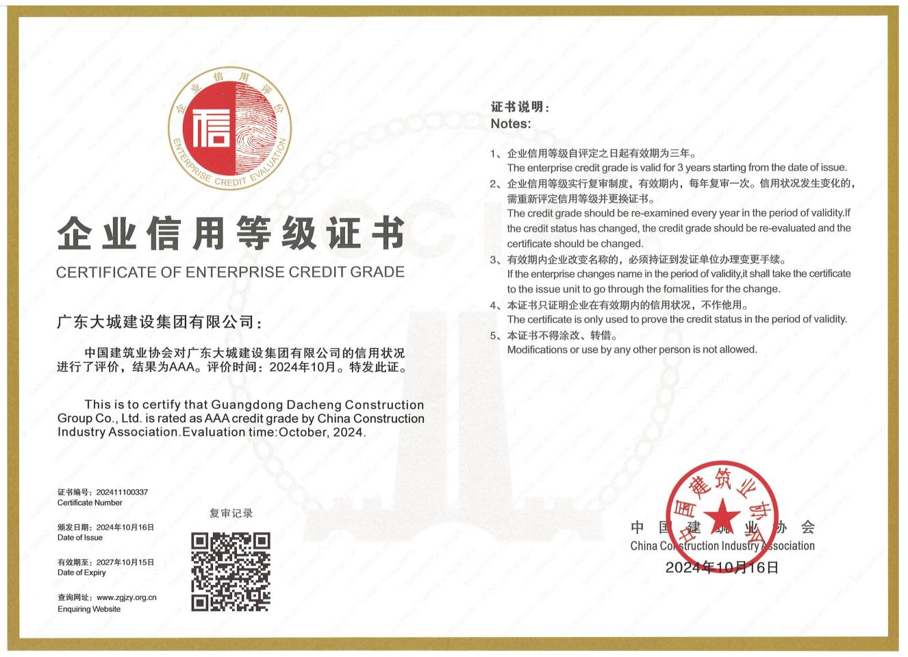 我司榮獲全國(guó)“建筑業(yè)AAA級(jí)信用企業(yè)”稱(chēng)號(hào)